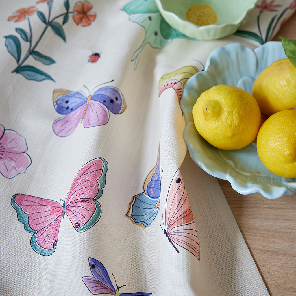 From Coucke, the Les papillons (The Butterflies) linen blend dish towel is the perfect tool around the kitchen! This natural tone towel features a selection of butterflies. Made of a linen and cotton blend, this towel is as hard working as it is attractive. Can be washed on warm and last for many years.