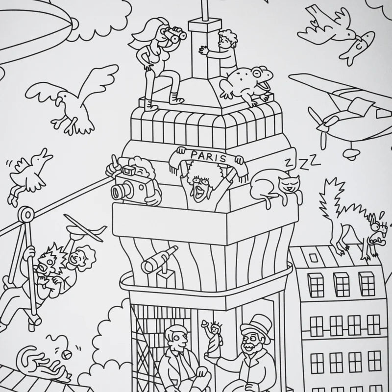 A great project for the family! Grab a box of coloring pens or pencils and start adding your favorite colors to this fun Eiffel Tower whimsical poster. A table, a wall or the floor can be used to work on the poster. Once finished, hang it as is or frame it for everyone to admire!