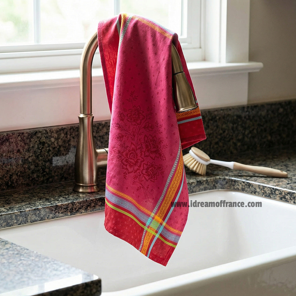 This pattern is beautiful and any food that falls on the placemats is easily cleaned up thanks to the acrylic-coated cotton. This is my second set of Le Cluny placemats (I also have the blue and white) because I love them so much!